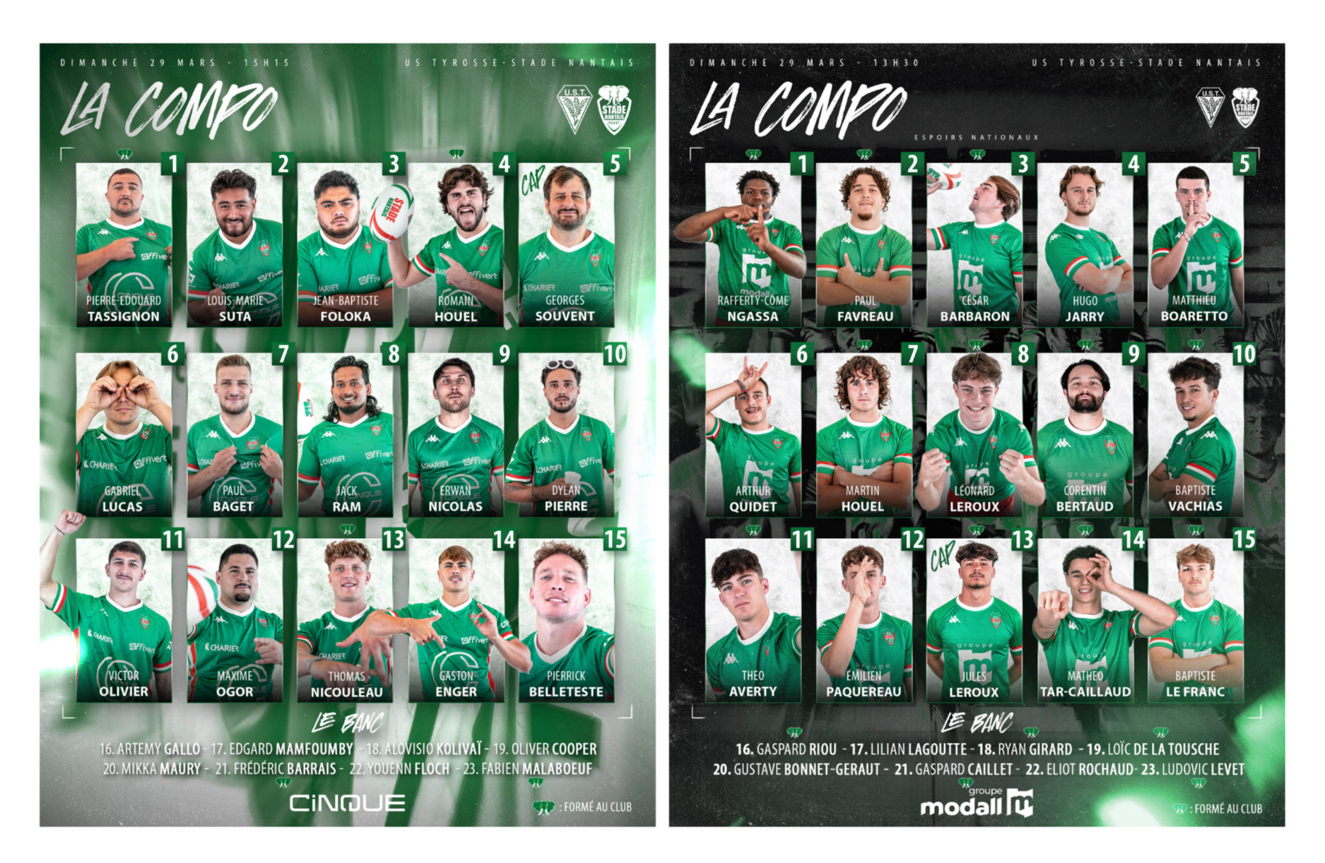 Nos Partenaires CINQUE et Modall Groupe vous présentent les compos pour la 20e journée de championnat Nationale 2 et Espoirs Nationaux :