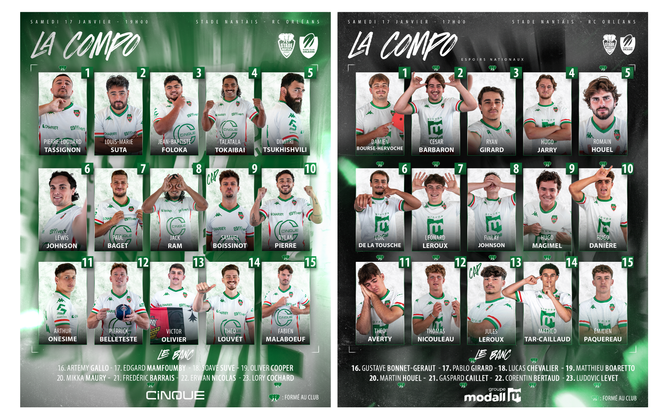 Nos Partenaires CINQUE et Modall Groupe vous présentent les compos pour la quatorzième journée de championnat Nationale 2 et Espoirs Nationaux :