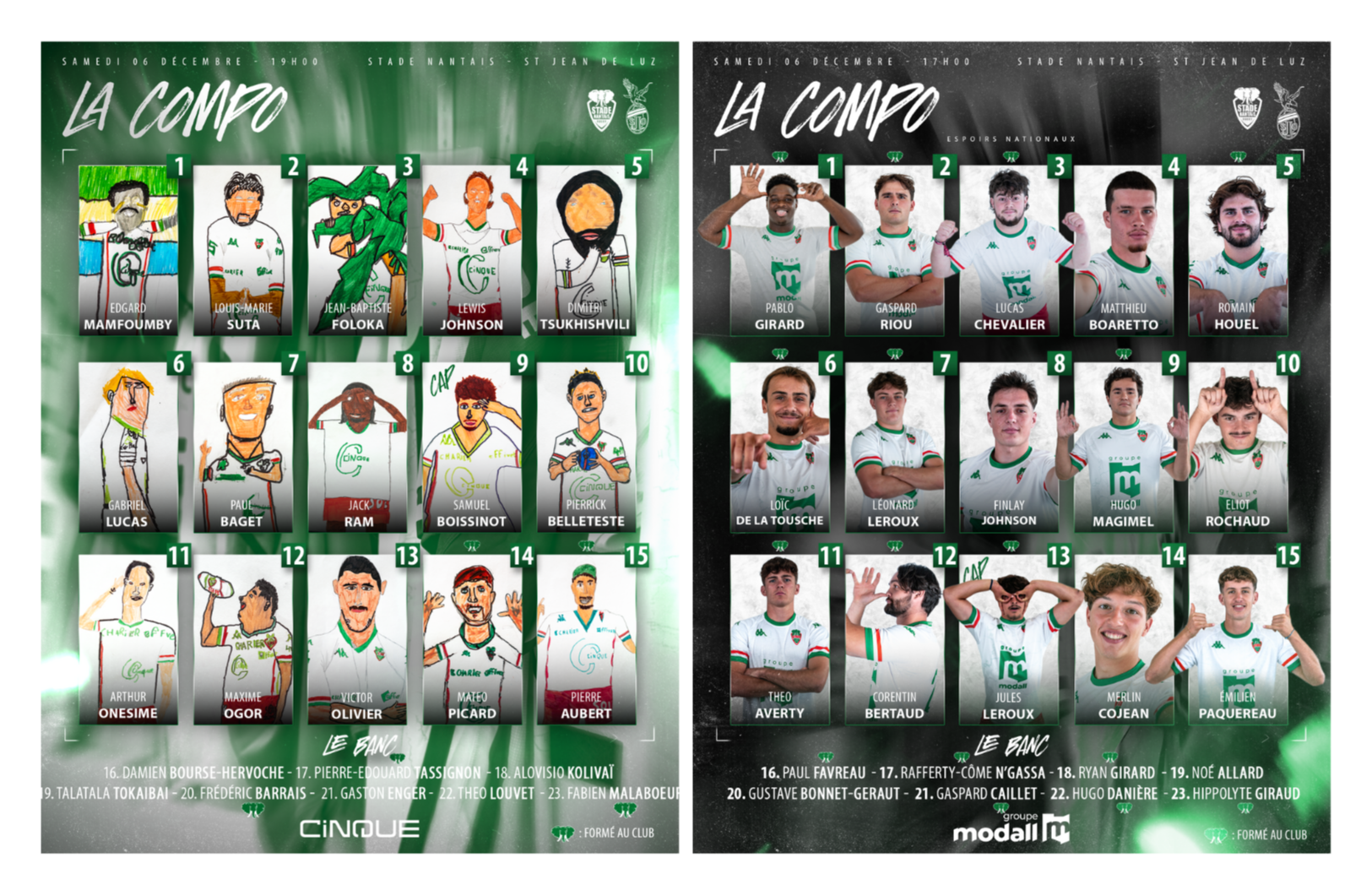 Nos Partenaires CINQUE et Modall Groupe vous présentent les compos pour la onzième journée de championnat Nationale 2 et Espoirs Nationaux :