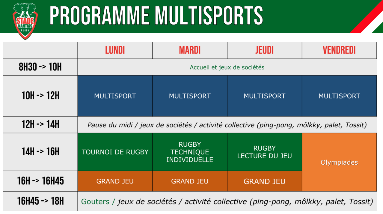 Semaine 1 stage Rugby et multi sport du 16/02 au 20/02